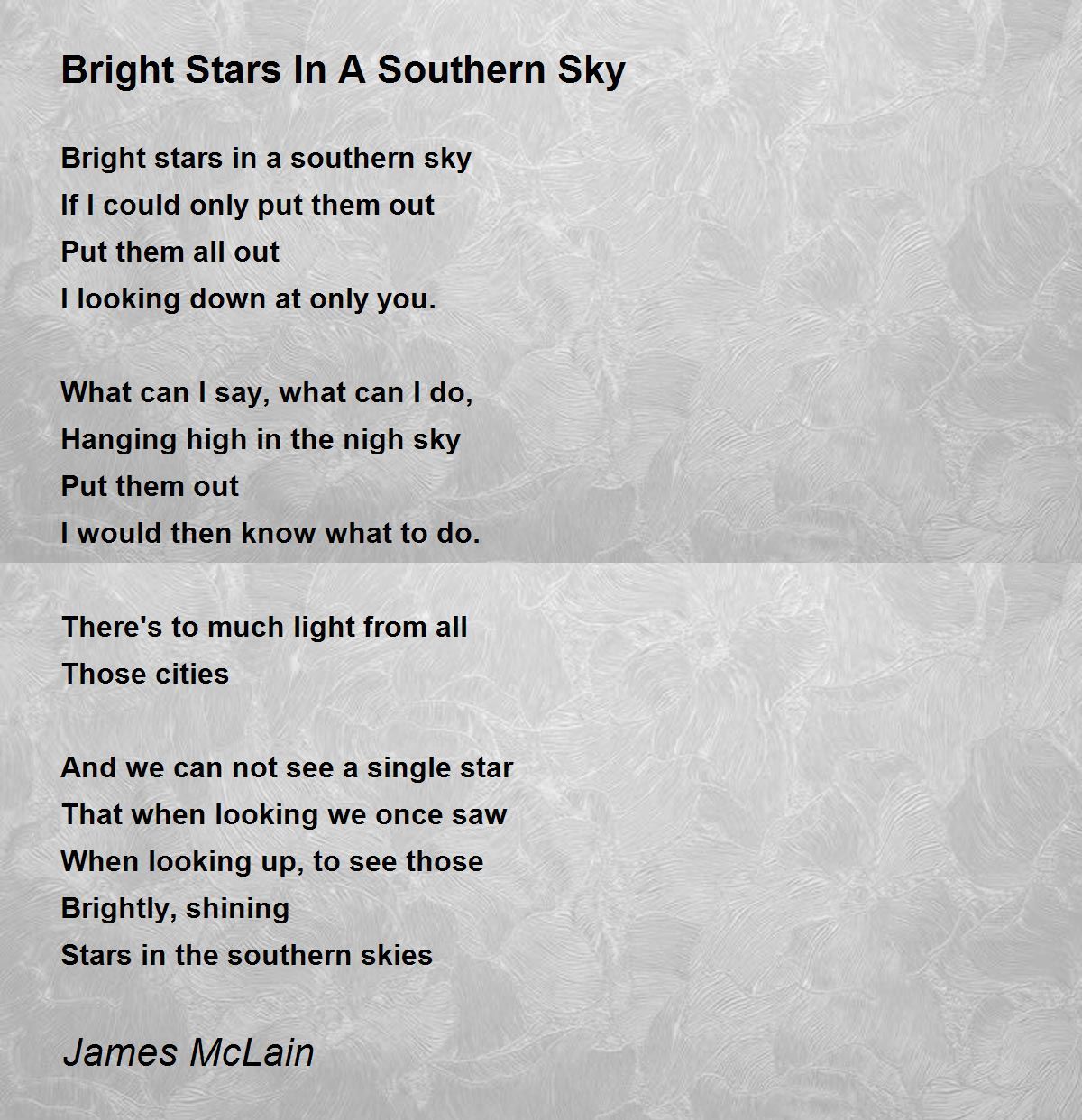Bright Stars In A Southern Sky Poem By James Mclain Poem Hunter