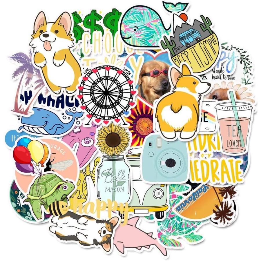 Pengxiaomei ウォーターボトルステッカー 35枚 Vsco かわいいステッカー 防水ステッカー ノートパソコン スケートボード オートバイ